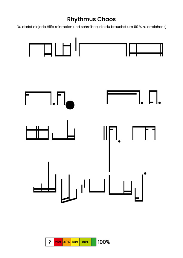 Am Ende wartet das Rhythmuschaos: Hier werden die Notenbausteine verfremdet, sodass sie nur noch mathematisch lesbar sind – der entscheidende Schritt zum echten Notenverständnis.